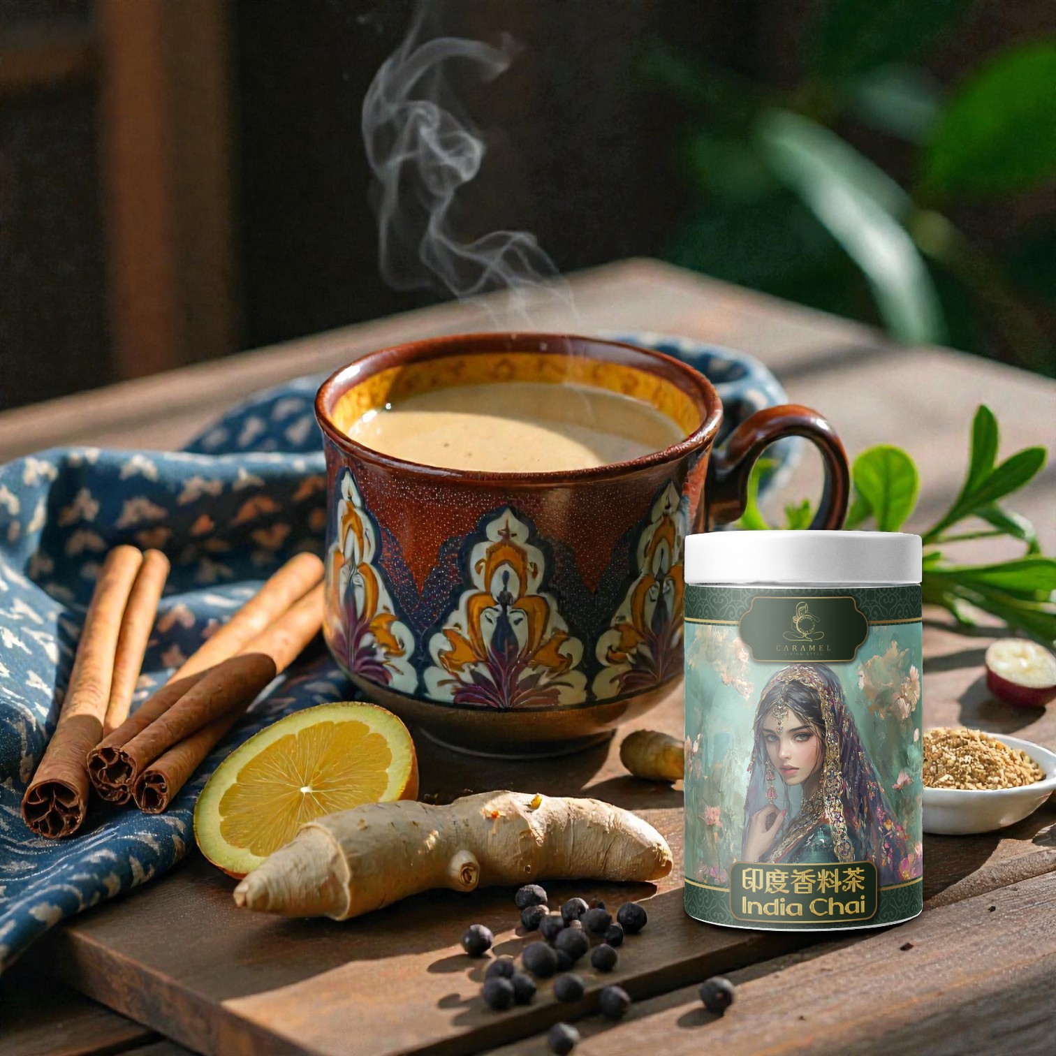 Desi Masala Chai 印度秘方香料茶,是焦糖生活選品為追求濃厚香氣與刺激感的茶迷設計的經典之作。融合印度阿薩姆強勁 CTC 茶葉與多款溫暖香料,如豆蔻、黑胡椒、薑、茴香籽、肉桂與丁香,每一口茶湯都充滿層次感與活力。這款茶帶著街頭市場的熱烈氣息,濃郁而溫暖,讓生活在一杯茶中找到精神振奮與心靈安放的平衡。