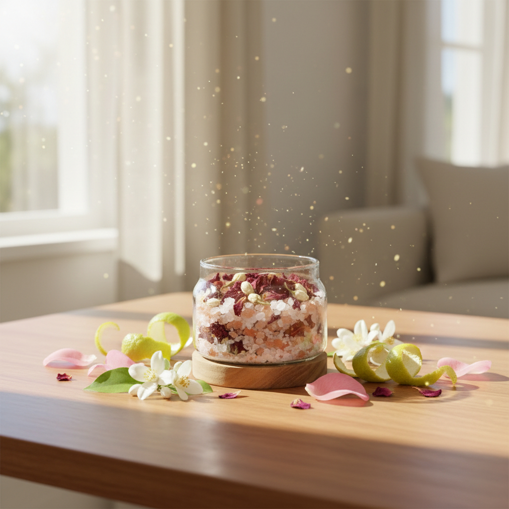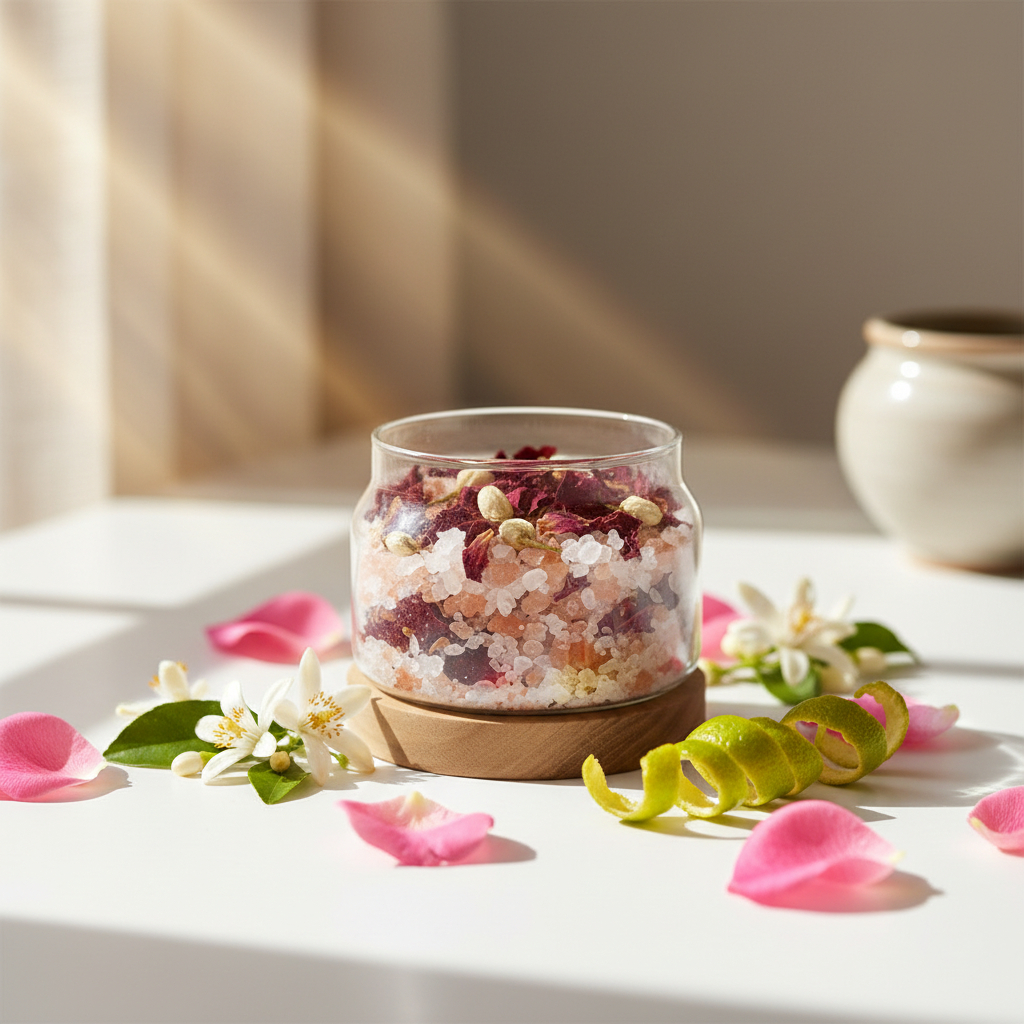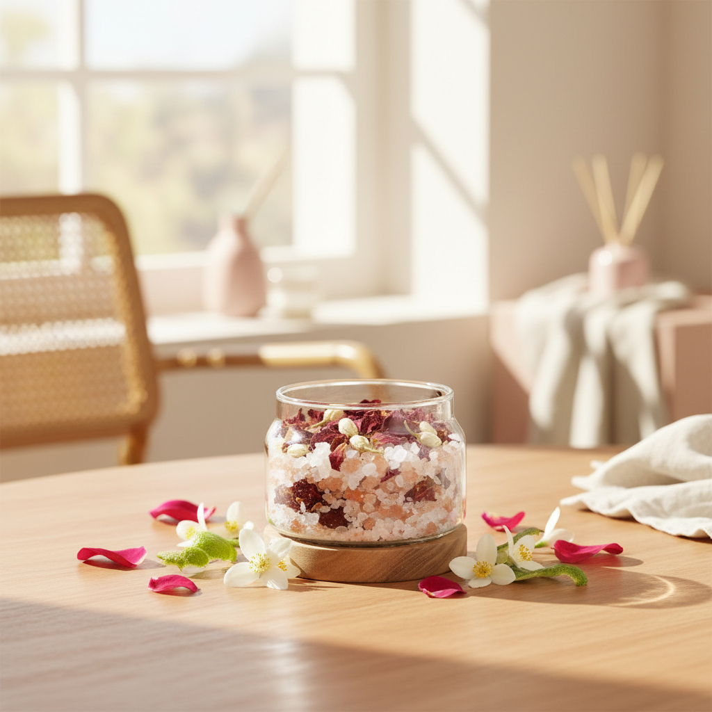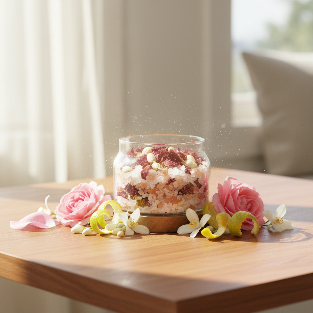雙鹽基底使精油分子得以緩慢釋放,讓空間氛圍自然穩定。 - 玫瑰花瓣 × 茉莉花 × 橙花:吸引力與親和力的花香核心