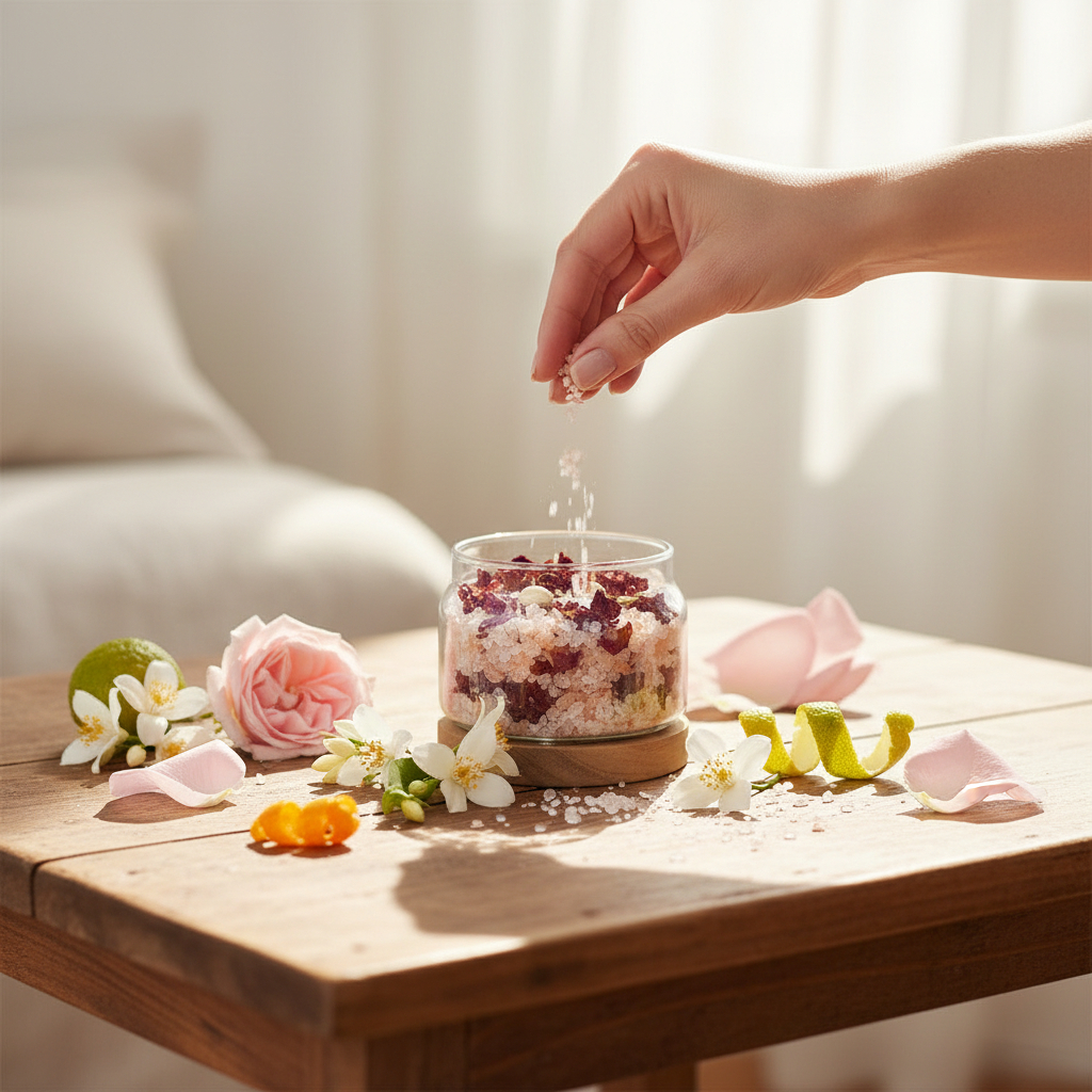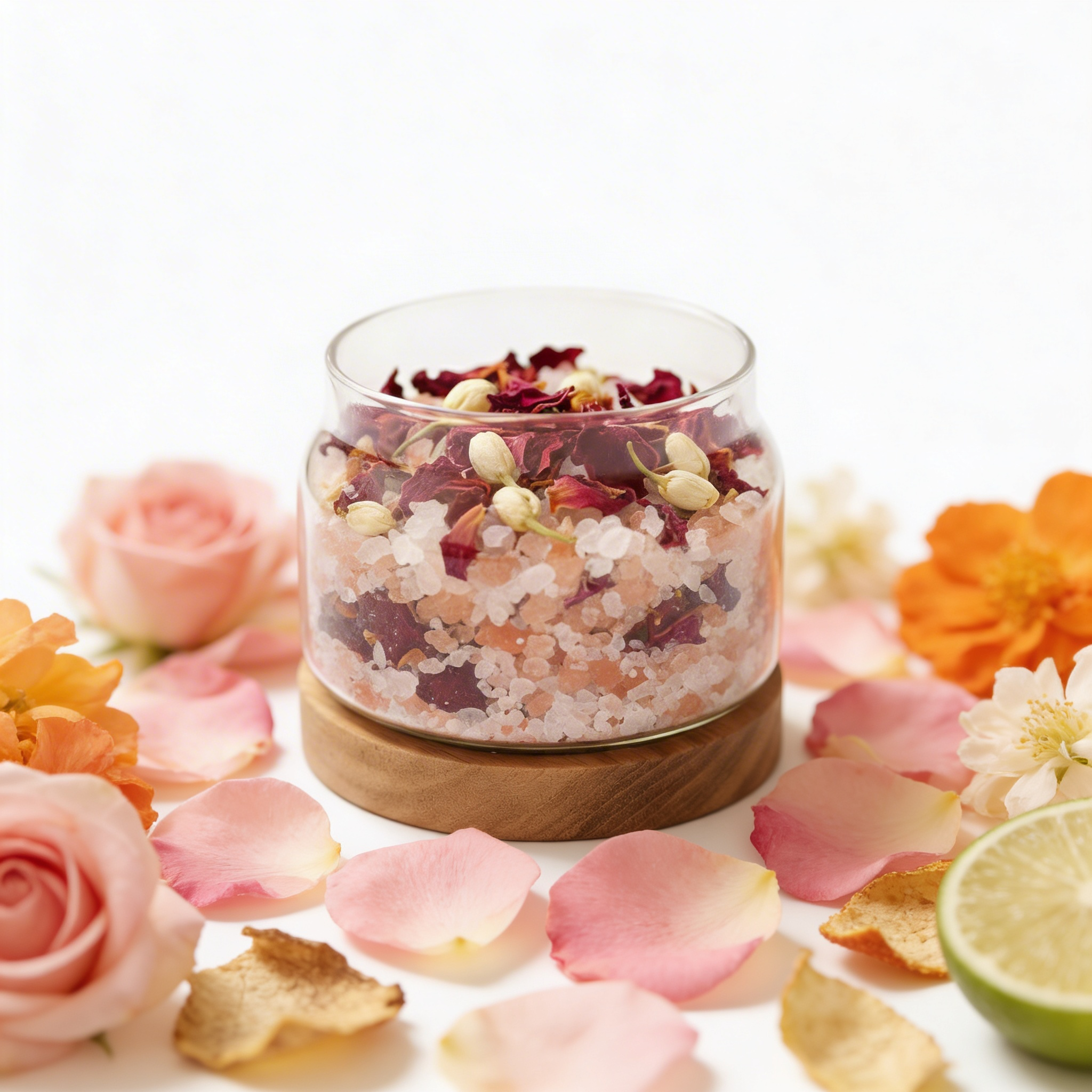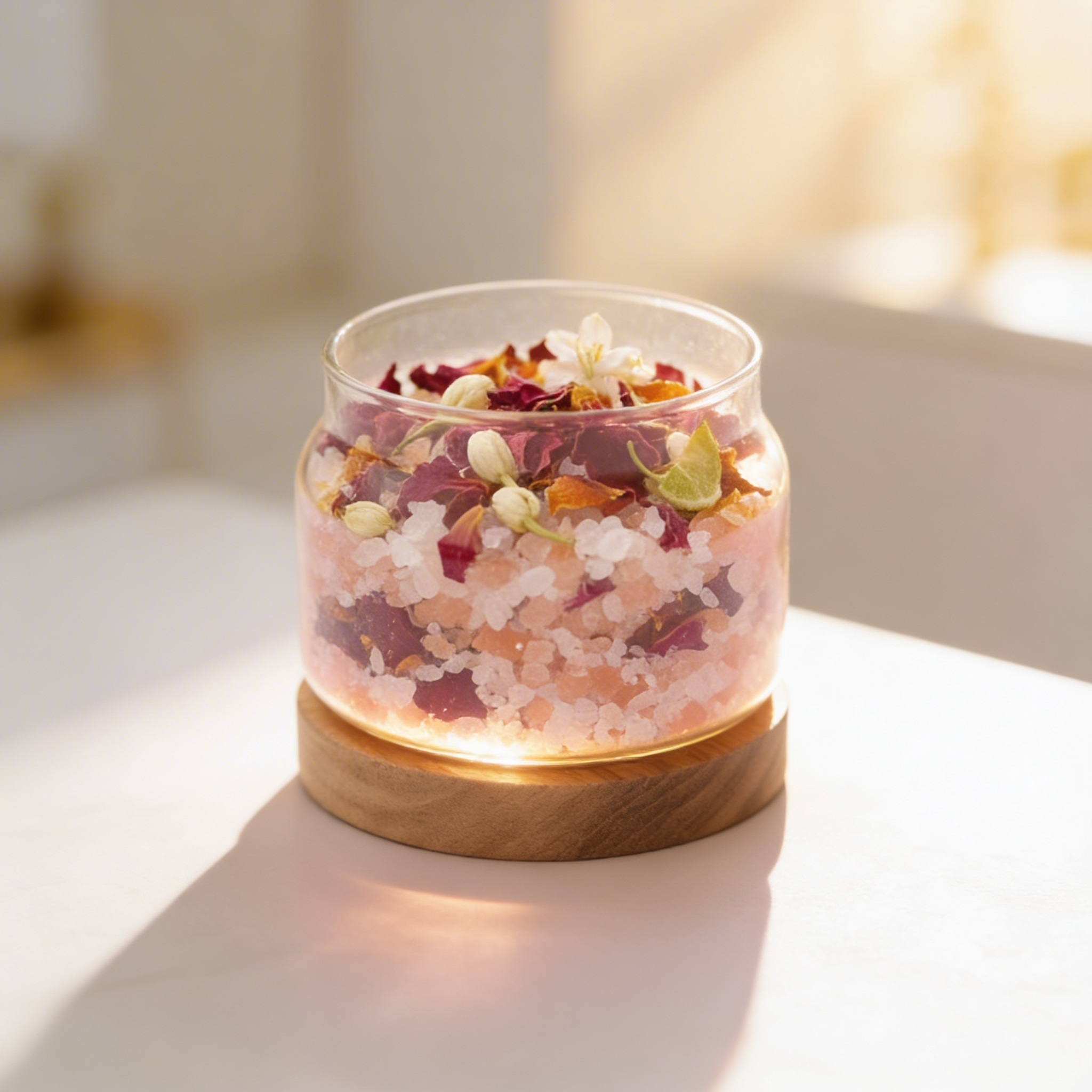 雙鹽基底使精油分子得以緩慢釋放,讓空間氛圍自然穩定。 - 玫瑰花瓣 × 茉莉花 × 橙花:吸引力與親和力的花香核心