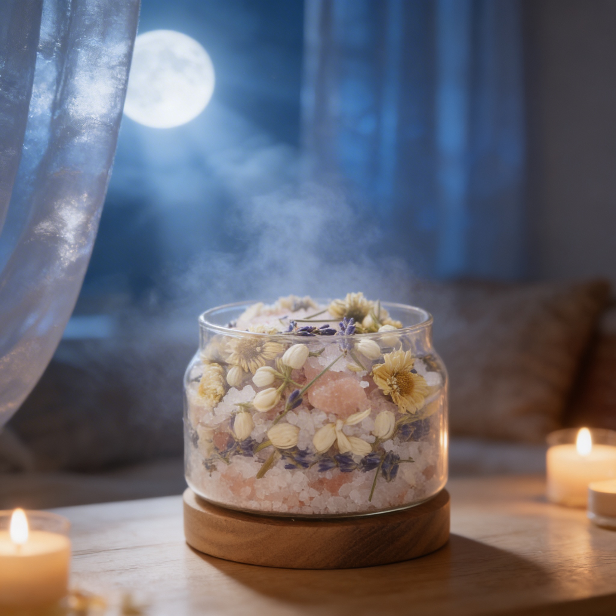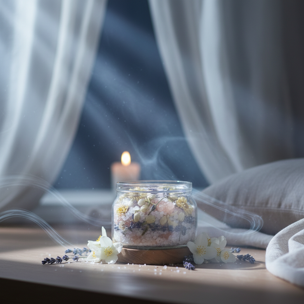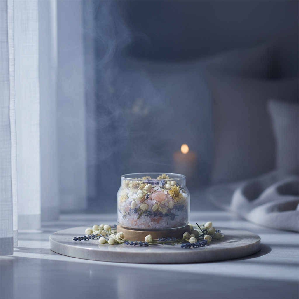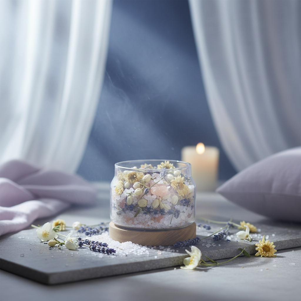 三種鹽礦物形成穩定基底,海鹽提供清透淨化感,粉紅鹽增添溫潤柔和氣息,鎂鹽則強化整體能量的沉靜與平衡。